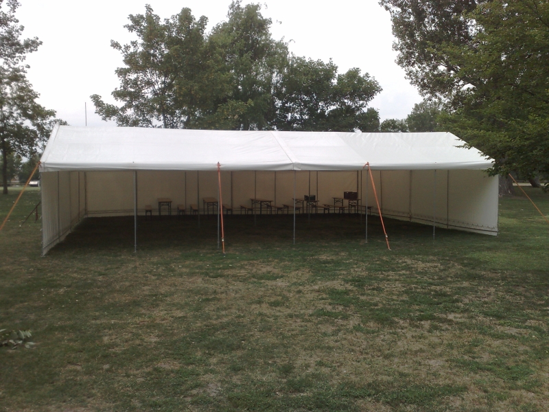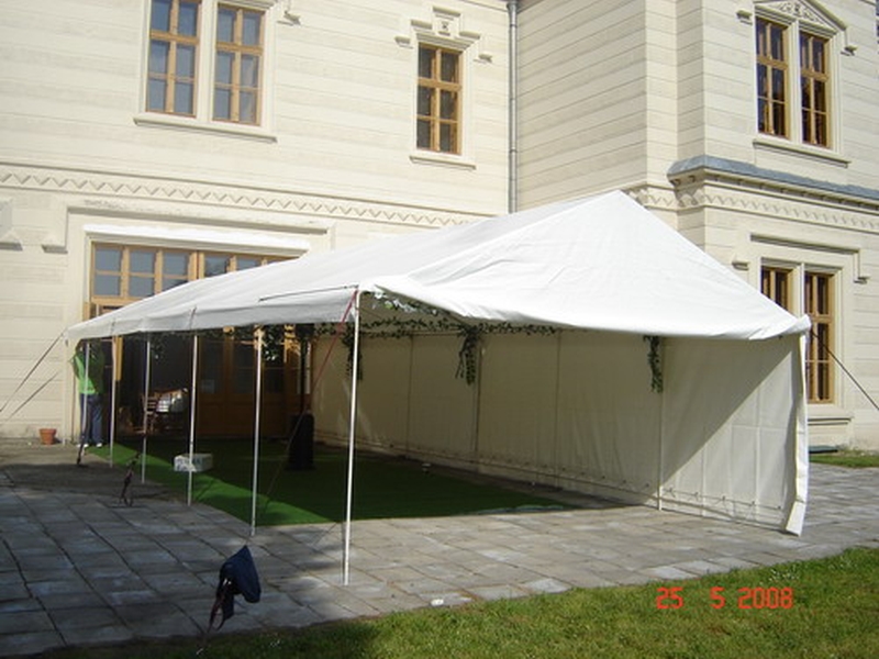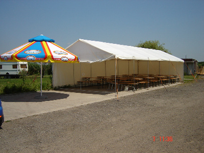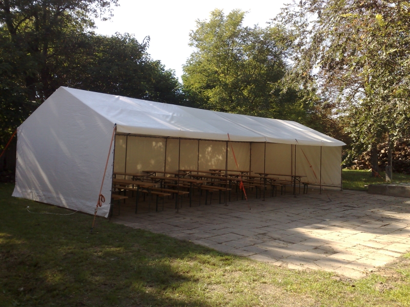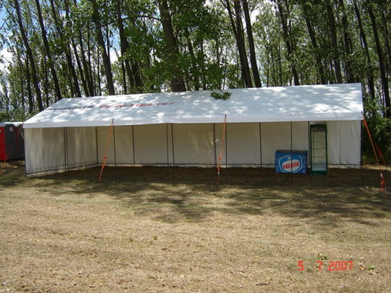 | Rendezvénysátor: | 5 méter széles 12 méter hosszú, hossza 6 méterenként növelhető maximum 24 méterig. |