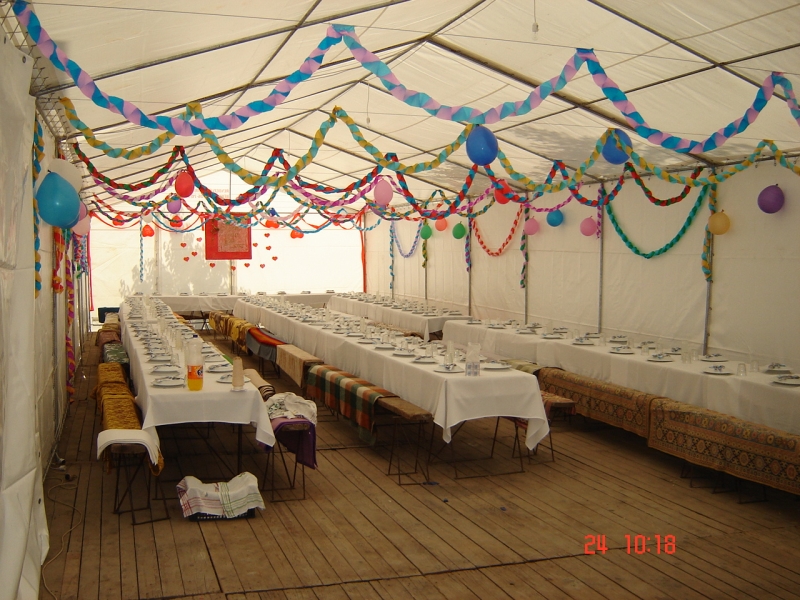 | Rendezvénysátor: | 5 méter széles 12 méter hosszú, hossza 6 méterenként növelhető maximum 24 méterig. |