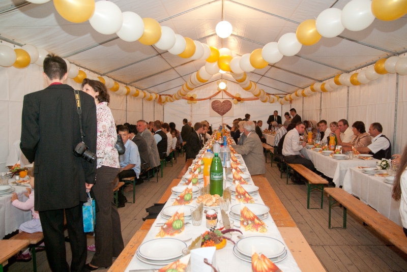 Rendezvények, lakodalmak lebonyolításához 50-től 200 főig sátrat, asztalokat, padokat, ezenfelül evőeszközöket, poharakat és edényeket is tudunk biztosítani!